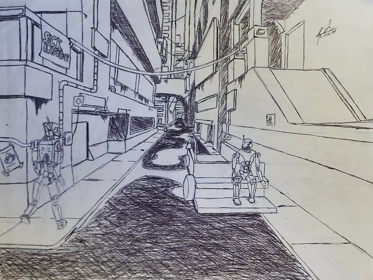 The Alsharian project is one of my longest lasting ideas, with human history repeating in another world, the player arrives ten years after the war, only to find himself hunted based on where he's from.