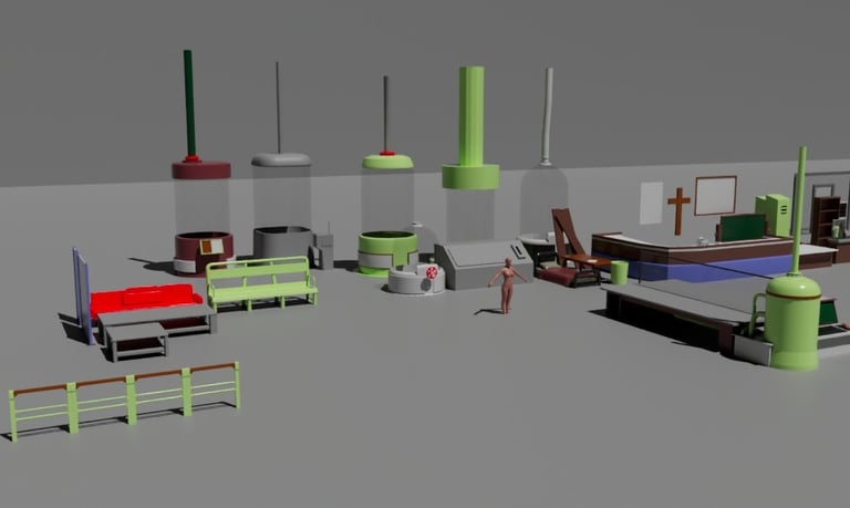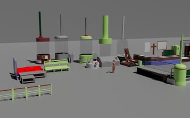 I take great pride in my work, as such I Prioritize creating my own models, as it forces me to sharpen my skills greatly. Here is a collection of every model I made for Managen in the span of four months, the modular set up, the furniture, and technology using these blocks, I'm able to create any scene for Managen using these blocks, and I plan to create more in the future.