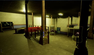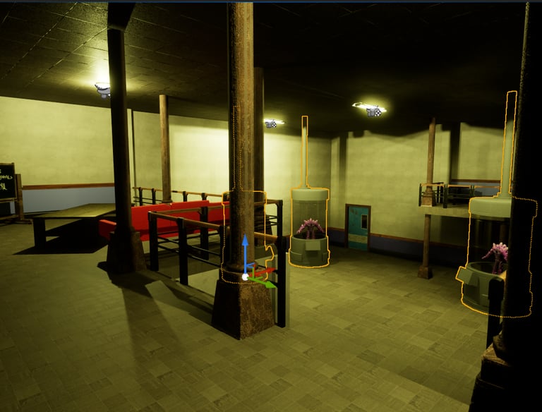 A scene from Managen, this 2 story lab space was designed to hold three large tanks, while scientists from above watch carefully. the upstairs segment also leads into a tight corridor into other various rooms upstairs, creating more depth and details within the enviroment.
