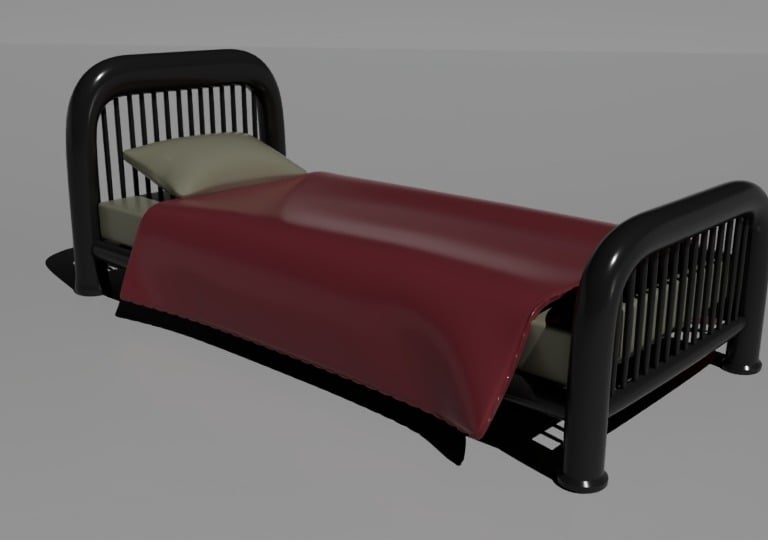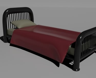A bed designed using various methods, it's one of my more detailed models as it has every part connected. The model is untextured, as I used various colors to identify parts before I take them into substance painter.